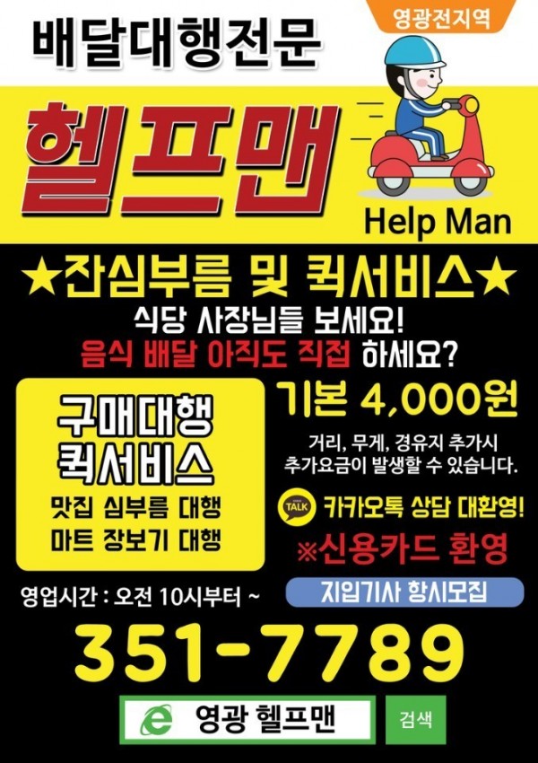 잔심부름. 퀵서비스부터 배달대행까지~~~ 영광헬프맨이 있습니다!(출처=영광톡정보방)