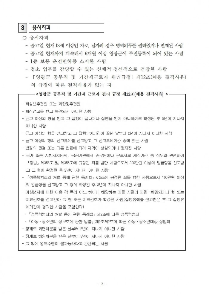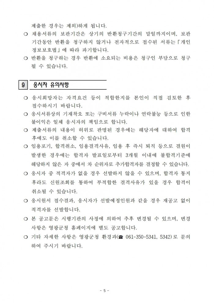 5. 공고방법: 영광군 홈페이지 내 게시